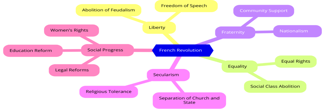French Revolution established bourgeoisie democracy and rights to people on the basis of the principles of equality, liberty and fraternity. It was a massive political progress vis-à-vis feudal monarchical society. Ex-suffrage, political and social rights, welfare state, social movements and so on.