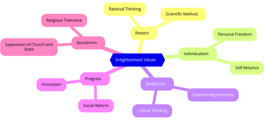 Enlightenment Values: Enlightenment thinkers like Descartes, Rousseau, Kant, and Locke moved away from religion towards science, promoting continuous progress free from superstition and irrationality. Hegel's progression from Family to Civil Society to State exemplifies this inevitable advancement.